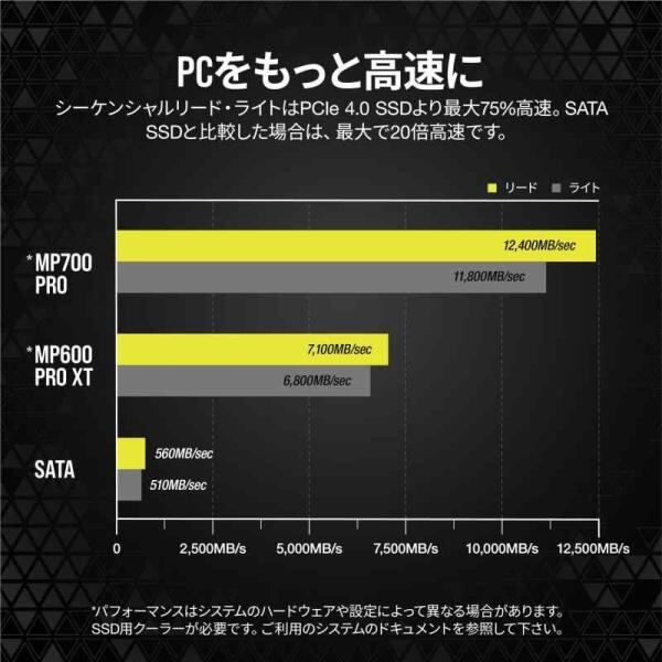 CORSAIR MP700 PRO 【PCIe Gen5 x4 NVMe 2.0 M.2 SSD】 高密度 TLC NAND M.2 2280 Dir1