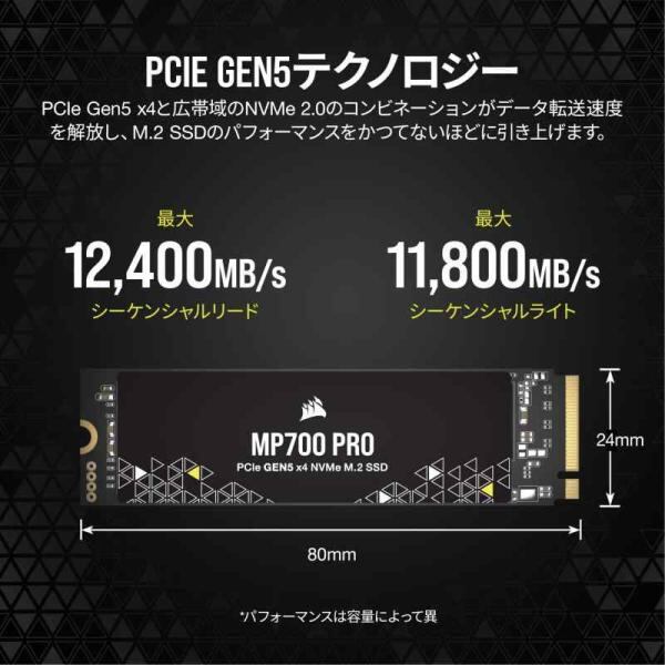 CORSAIR MP700 PRO 【PCIe Gen5 x4 NVMe 2.0 M.2 SSD】 高密度 TLC NAND M.2 2280 DirectStorage 対応 最大 12,400MB/s CSSD-F2000GBMP700PNH