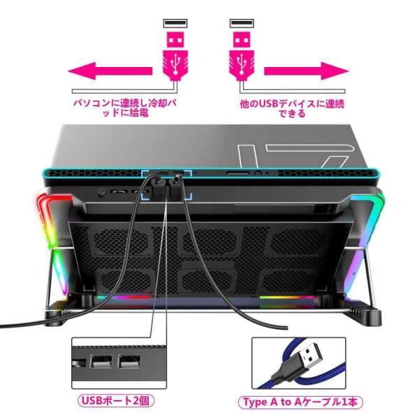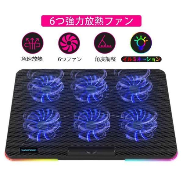 LiANGSTAR ノートパソコン冷却パッド 6つ冷却ファン ノートPCクーラー 7段階高さ 角度調整 風量調節 冷却台 2つUSBポート 静音 スマホンスタンド付き 最大17.3インチまで対応 RGBライト付き