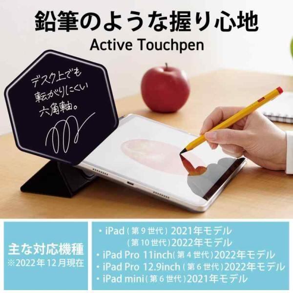 エレコム タッチペン iPad専用 鉛筆型 六角軸 パームリジェクション対応 磁気吸着 傾き検知対応 USB-C充電 ペアリング不要 【大人も子供も持ちやすい鉛筆形状】 イエロー P-TPACAPEN01YL