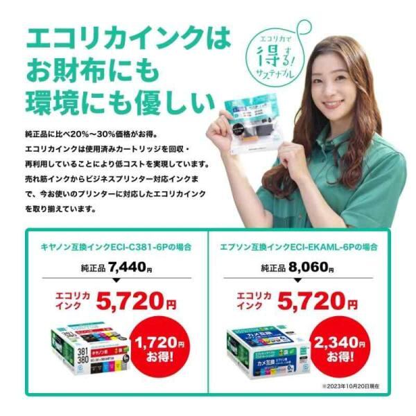 【エコリカ封筒パッケージ】エコリカ エプソン クマノミ KUI-6CL-L対応リサイクルインク 6色パック EC-KUI-6CL-LA (ECI-EKUIL-6P) 残量表示対応
