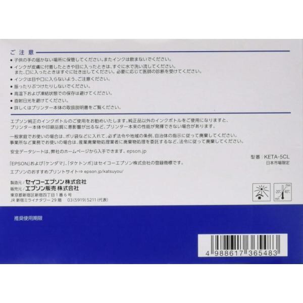 エプソン 純正 インクボトル ケンダマ・タケトンボ KETA-5CL 5色パック 使い切りサイズ