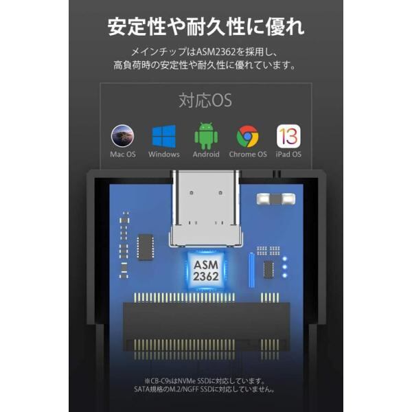 【対応可能種類】2230 / 2242 / 2260 / 2280のM.2 M Key / B&M Key(Nvmeのみ)のSSDに対応します。 B-Key / B+M Key(SATA)インターフェースのSSDに対応しないから、ご購入の前、お使いのSSDをご確認ください。