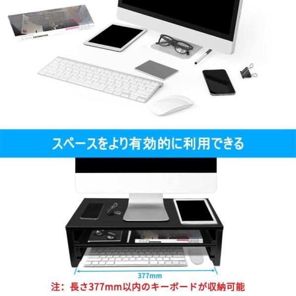 EAYHM モニター台 二段式 机上台 木製面板42.5x23.5CM PCキーボード收?ラック パソコン スタンド プリンター台