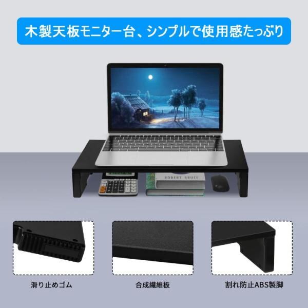Point 1:モニター台はABS/合成繊維板で作られます。この素材はコストパフォーマンスが優れて、環境にやさしいです。耐荷重は15kgです。サイズ:42.5x23.5x9cm、天板の厚さは12mmです。