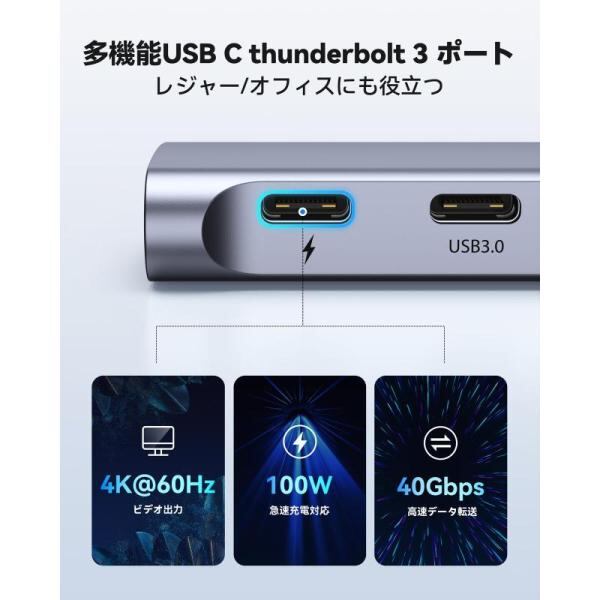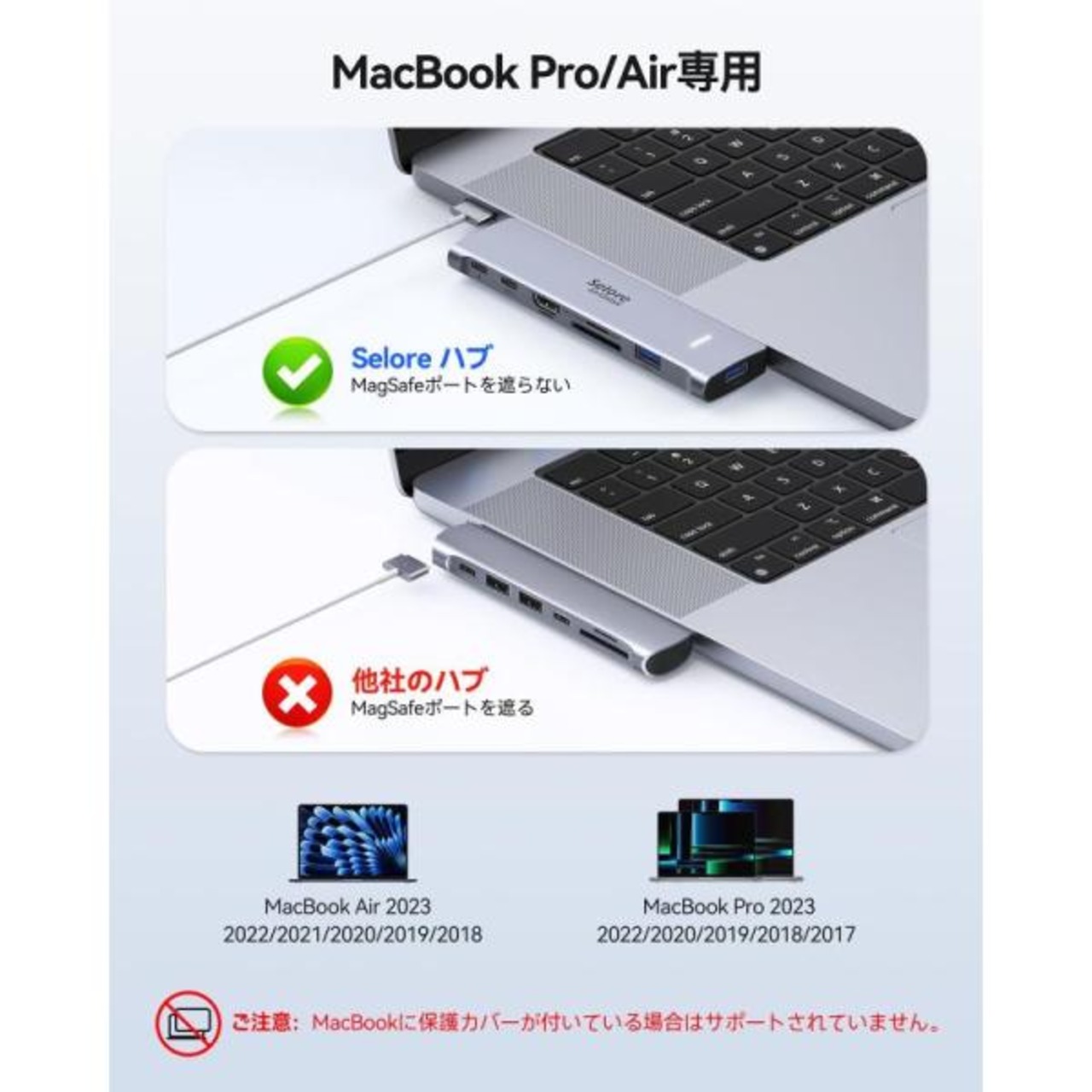 【macbook air ハブ 7in2 MagSafe 3ポートに干渉しない】このmacbook ハブはポート合計7つ:4K@30Hz HDMIポート、多機能Thunderbolt 3ポート、2つのUSB-Aポート、データ転送用USB-Cポート、TF&SDカードスロットを合わせて7つの差込口が搭載されています。macbook pro ハブに備えているUSB Type-C端子をMacBookに直接挿し込んで使用できます。このタイプは新型のMacBookのMagSafeポートを避けて差し込むことができるタイプなので、スマートに装着できる「おしゃれと機能性」に特化したMacBookにおすすめ。基本的にコンパクトに収納でき、携帯性に優れています。?パソコン保護ケースを付けると、ハブが完全に挿入しなかったため、mac usb ハブを使用する時、保護ケースを付けないでください。