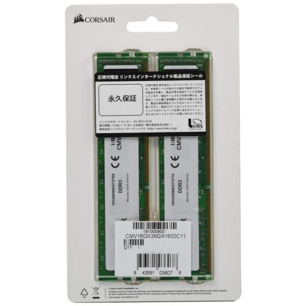 CORSAIR DDR3 デスクトップ Memory Module VALUE SELECT Series 8GB×2kit CMV16GX3M2A1600C11