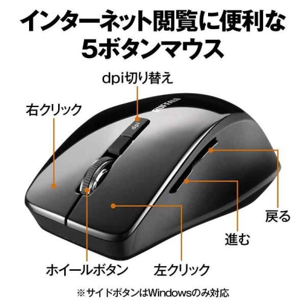 バッファロー マウス 無線 ワイヤレス 静音 5ボタン 【戻る/進むボタン搭載】dpi切替 BlueLED ブラック BSMBW325BK