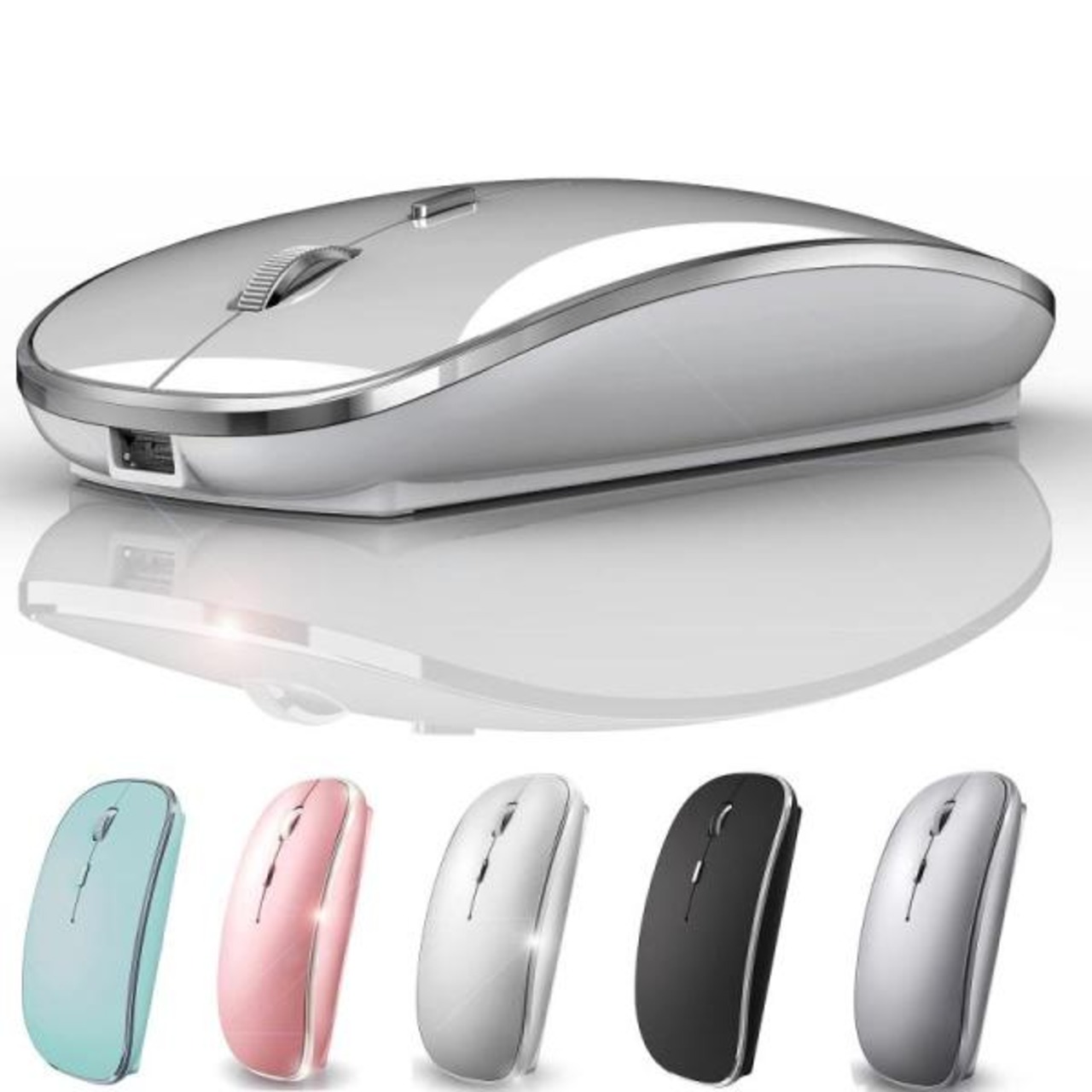 充電式Bluetoothマウス ワイヤレスBluetoothマウス iPad Pro iPad Air Mac MacBook Pro MacBook Air ノートパソコン Chromebook Windows HP DELL (シルバー)