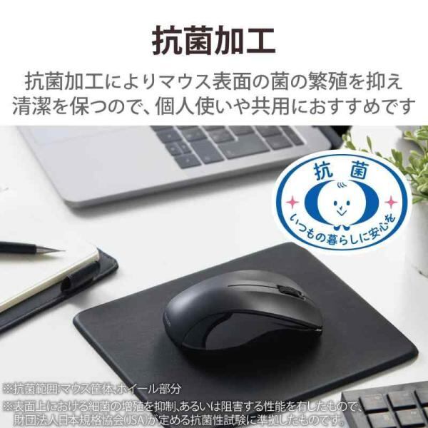 エレコム(ELECOM) マウス ワイヤレスマウス Bluetooth 3ボタン Mサイズ 抗菌 ブラック M-BY11BRKBK