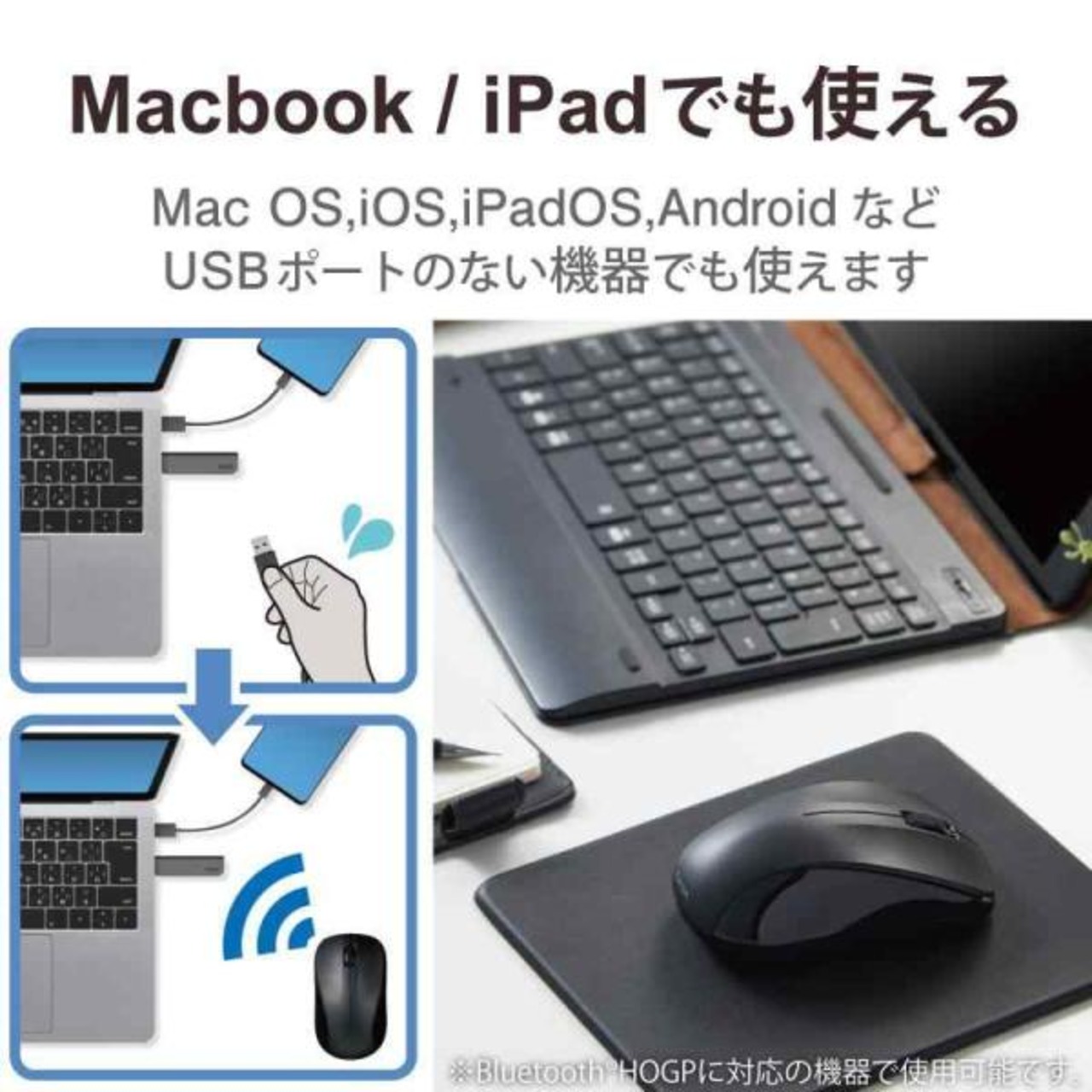 Bluetooth(R)HOGPに対応したパソコンなどの端末で、USBポートをふさがずに接続できます。レシーバが不要なため、USBポートが少ない薄型パソコンやタブレットをスマートに使いこなせます。1