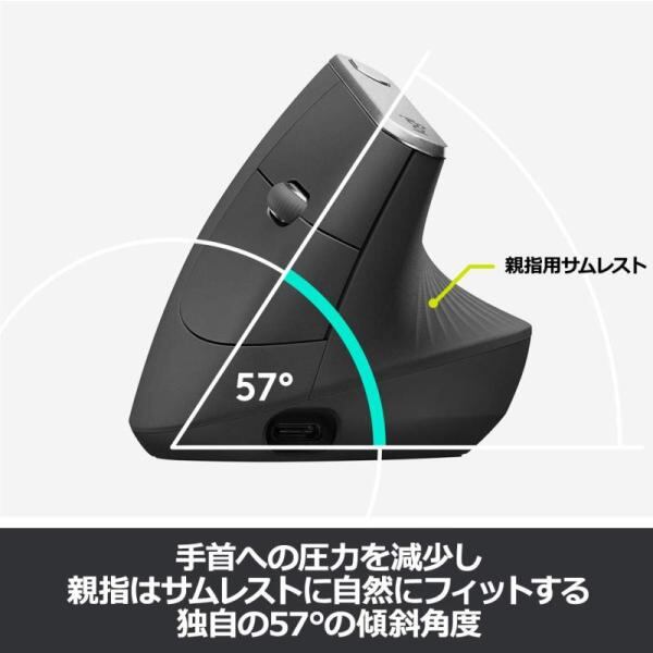ロジクール ワイヤレスマウス 無線 マウス MXV1s MX Vertical アドバンスエルゴノミックマウス Unifying Bluetooth 高速充電式 FLOW対応 6ボタン ワイヤレス windows mac iPad OS 対応 グラファイト 国内正規