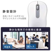 マウスのクリック時のカチカチ音がしない静音スイッチを採用し、カフェや図書館など音が気になる場所でも使えます。
