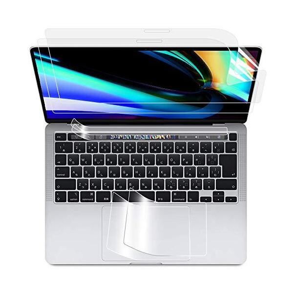 【2022新組み合わせ】MacBook Pro 13用液晶保護フィルム AppleM1/M2チップ 高光沢 Touch Barフィルム&トラックパッドフィルム付属 PET素材 超薄 防指紋 キズ防止 防塵 防滴 MacBook Pro 13 用アクセサリ