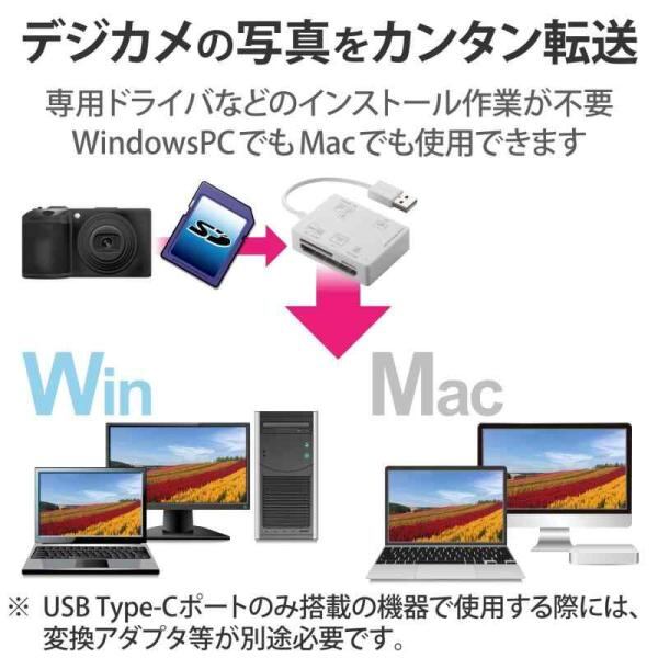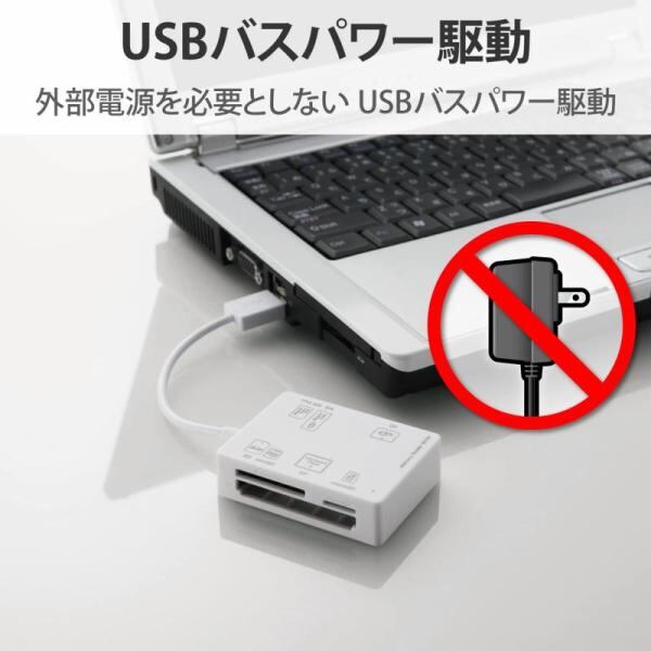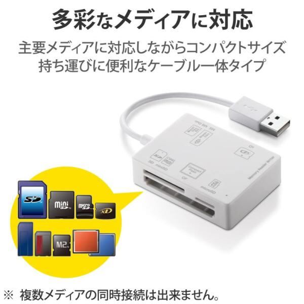 エレコム カードリーダー USB2.0 ケーブル一体型 コンパクトモデル 58メディア対応 ホワイト MR-A012WH