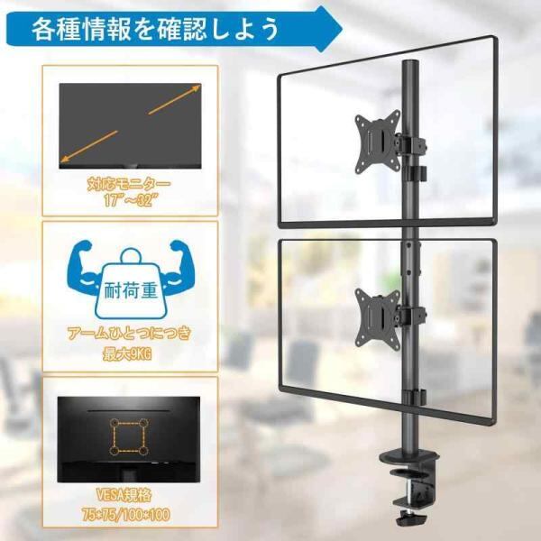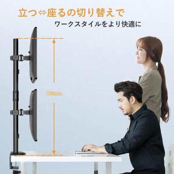 WORLDLIFT モニターアーム 上下2画面 縦 デュアル ロングポール ディスプレイアーム 17〜32インチ対応 耐荷重各9kg 多角度調節