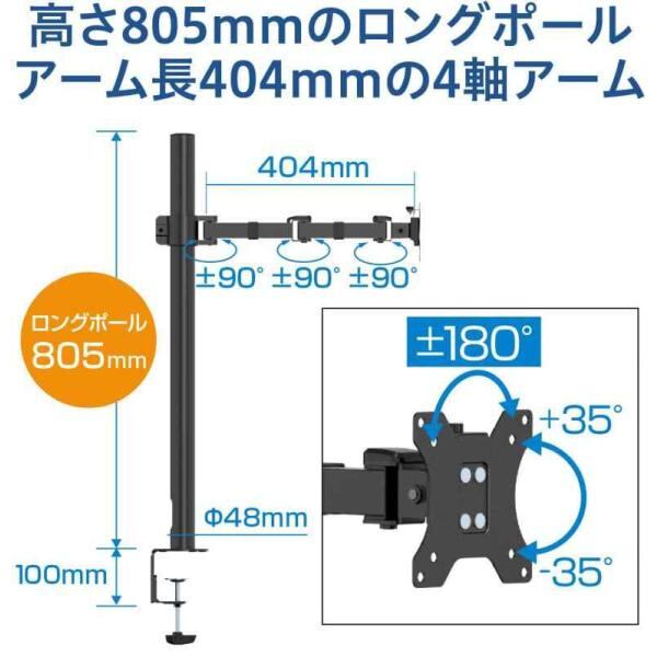 高さ805mmのロングポール、1画面液晶ディスプレイアーム
