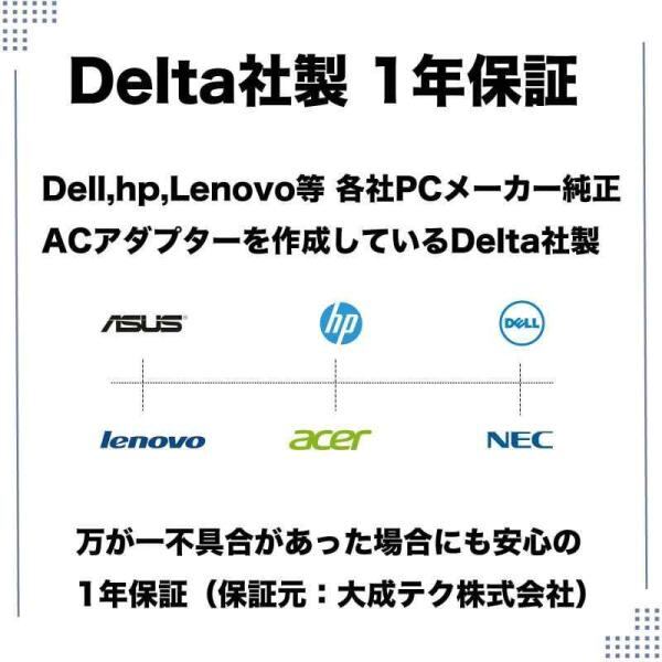 メーカー:ACアダプター業界世界大手DELTA社の商品です。(LENOVO、NEC、SONY、HPなどのメーカーにも商品提供していますので、純正同様とご利用いただけます。)
