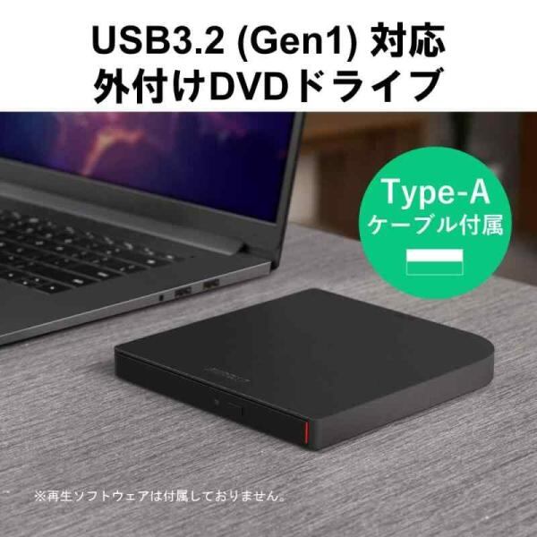 USB3.2(Gen1)ポータブルDVDドライブ 書込みソフト添付 ブラック