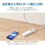 USBポートを4ポート搭載しており、スマートフォンなどを4台同時に充電可能です。4ポート合計最大3.4Aの出力が可能で