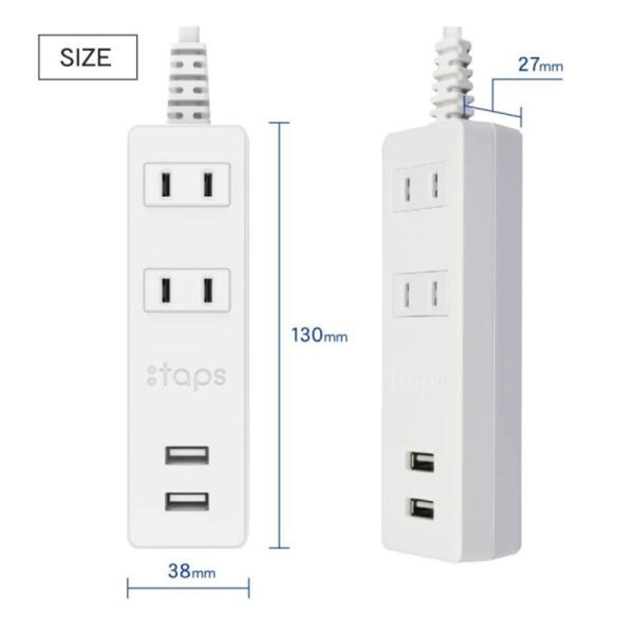 本体サイズ:W38×H130×D27mm(コード、プラグ部を除く)、本体重量:約180g