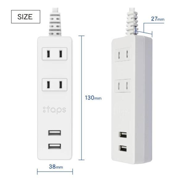 トップランド(Topland) 電源タップ 延長コード (コンセント2個口 / 2USBポート) 1m オートパワーシステム搭載 トラッキング防止プラグ 抗菌加工 コンパクトタイプ STPA10-WT