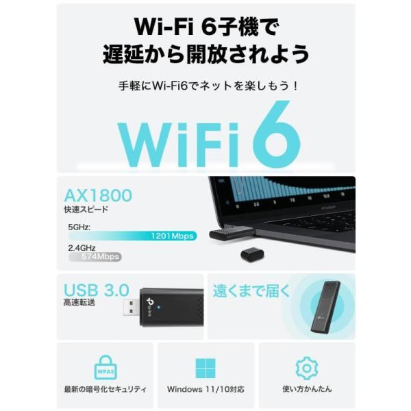 【特徴】WiFi 6 対応 AX1800規格 USB3.0対応無線LAN子機 Archer TX20U/A