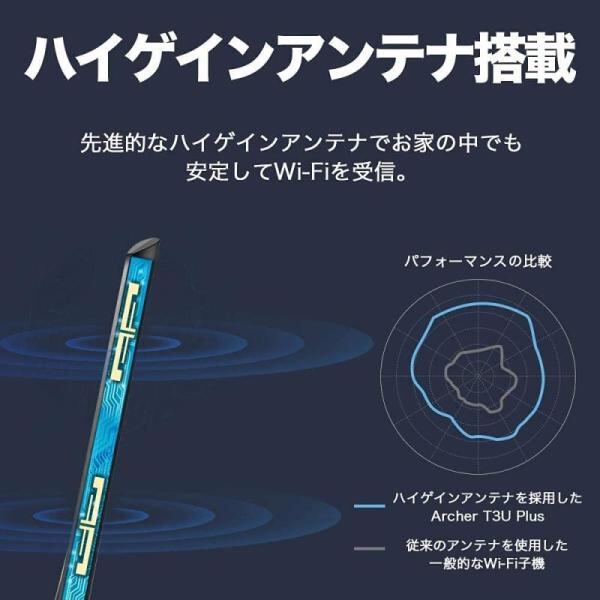 TP-Link WiFi 無線LAN 子機 wifiアダプター USB3.0 AC1300規格 867 + 400Mbps 11ac対応 デュアルバンド ハイパワーアンテナ搭載 MU-MIMO メーカー3年 Archer T3U Plus