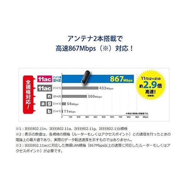 アイ・オー・データ Wi-Fi 無線LAN 子機 11ac/n/a/g/b 867Mbps/WPA3対応/USB3.0/Wアンテナ内蔵/可動アンテナ搭載 日本メーカー WN-AC867U
