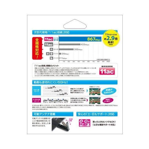 [スピード] 867Mbps(11ac)、300Mbps(11n)、54Mbps(11a,11g)、11Mbps(11b)