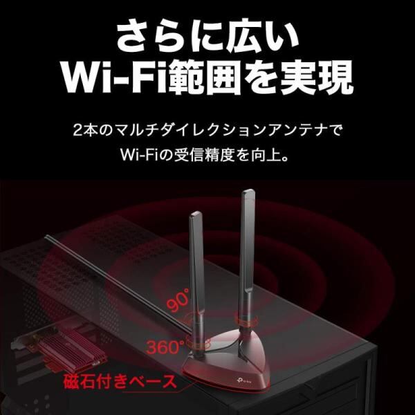 [特徴] 11AX規格値2402 + 574Mbps" Wi-Fi6" 対応 PCI-E アダプター。Bluetooth 5.2搭載でBluetooth通信も可能。