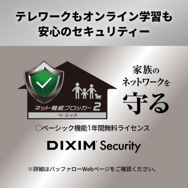 【安心のセキュリティー】より強固なセキュリティー規格「WPA3」に対応。通信の暗号化により、高い安全性を確保します。また、セキュリティ?機能「ネット脅威ブロッカー2 ベーシック」に対応