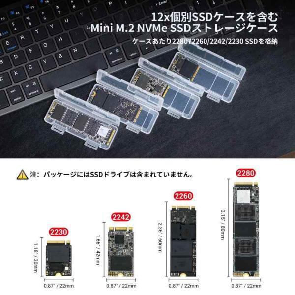 大容量 M.2 NVME SSD 収納ケース 12枚 M.2 NVME 2230 / 2242 / 2260 / 2280 SSD 収納可能 クリアケース付き 二重保護 耐衝撃 防塵 防水 整理ラベルシール付き