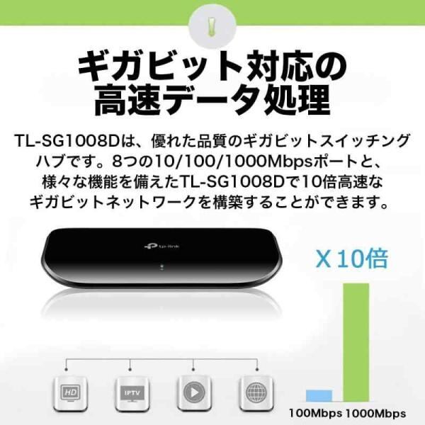 TP-Link スイッチングハブ ギガビット 8ポート 10/100/1000Mbps プラスチック筺体 メーカー3年 TL-SG1008D