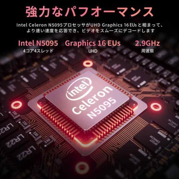 ?【高速CPU/16Gメモリー】高速かつ静音な第11世代インテル Celeron N5095 (4コア) プロセッサーを搭載し、標準周波数2.0 GHz、最大周波数2.80 GHzで非常にスムーズな操作が可能です。さらにDDR4 16GBメモリー、高速SSDを搭載しており、さらにSSD増設スロットがあり拡張可能です。快適でスムーズな操作感を楽しめます。