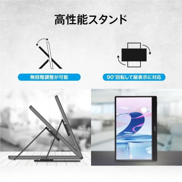 MSI モバイルモニター PRO MP161 E2 15.6インチ/フルHD/IPSパネル/60Hz/薄型設計/高性能スタンド/片側L字ケーブル/スリーブケース/高性能スタンド付き/スピーカー(1.5W + 1.5W)/HDMI/USB Type-C/メーカー3年保