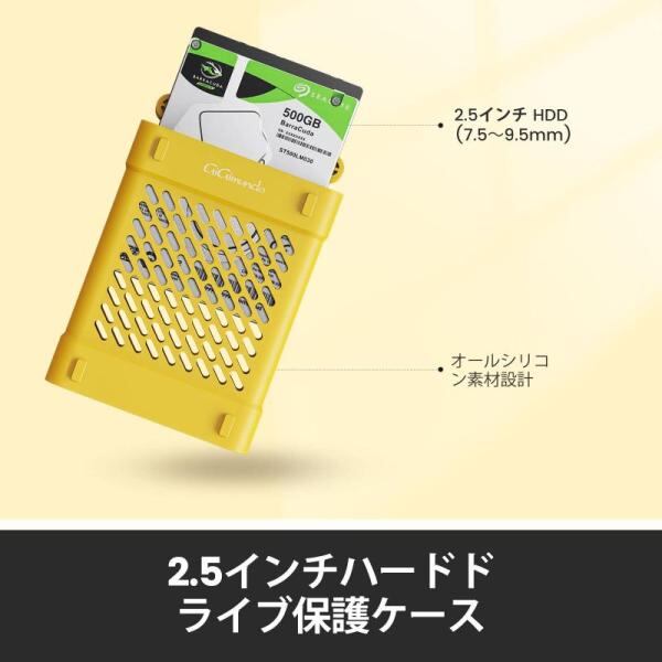 【2.5インチ収納】2.5インチ内蔵ハードディスクドライブを収納できる保護ケース。耐久性のシリコン素材デザインは、耐衝撃性、滑り止め、落下防止、より強力で壊れにくい頑丈なケースを提供します。柔らかい素材を使用しているので、収容物を優しく保護します。