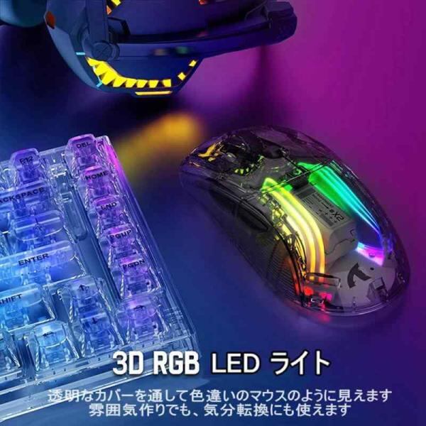 【11種ライト付き】多種多様でカラフルなライトを搭載、用途や気分に合わせてマウス裏のボタンで変換することが可能、透明なカバーを通して色違いのマウスのように見えます、雰囲気作りでも、気分転換にも使えます。