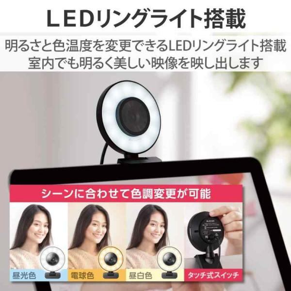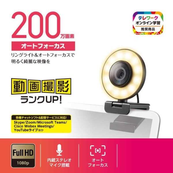 エレコム Webカメラ オートフォーカス 200万画素 60FPS Full HD LEDリングライト搭載 プライバシーシャッター付 ブラック UCAM-CX20ABBK