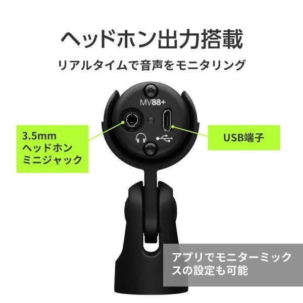 SHURE シュア MV88+ステレオ USB マイクロホン : コンデンサーマイク 録音 レコーディング 歌 楽器 ギター ドラム 演奏 実況 配信 ゲーム ゲーミング ポッドキャスト MOTIVシリーズ iOS Android Mac Windo