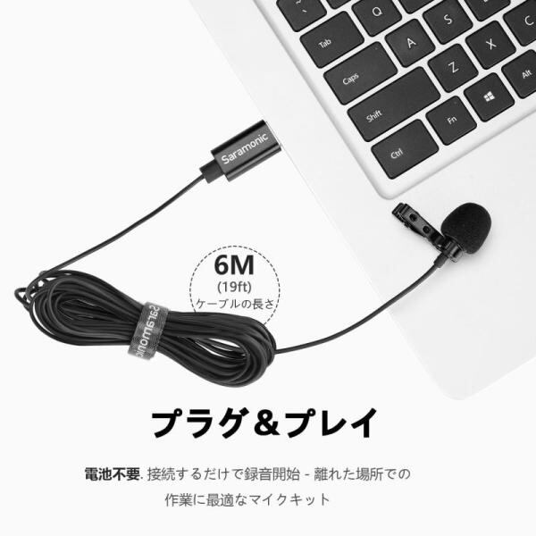 USB PC用 ピンマイク Saramonic SR-ULM10L 小型マイク ミニクリップマイク USB-A コンデンサーマイク 単一指向性 プラグアンドプレイ PC用マイク ネット通話 Skype、ゲーミング ライブ配信 録音 在宅勤
