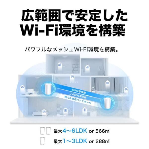 [ホールホームWiFi6] シームレスで広範囲をムラなくカバー