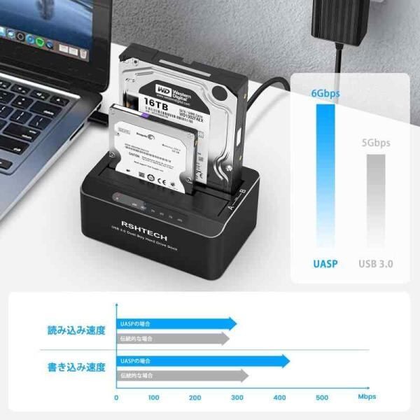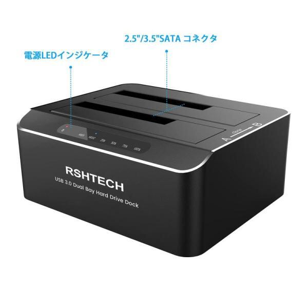 HDDスタンド RSHTECH アルミ製 USB3.0接続 UASP対応 2.5と3.5型 SATA HDD SSD クローン 2x16TB 対応 オフラインクローン機能と自動スリープ機能付き 工具不要(RSH-DS01)