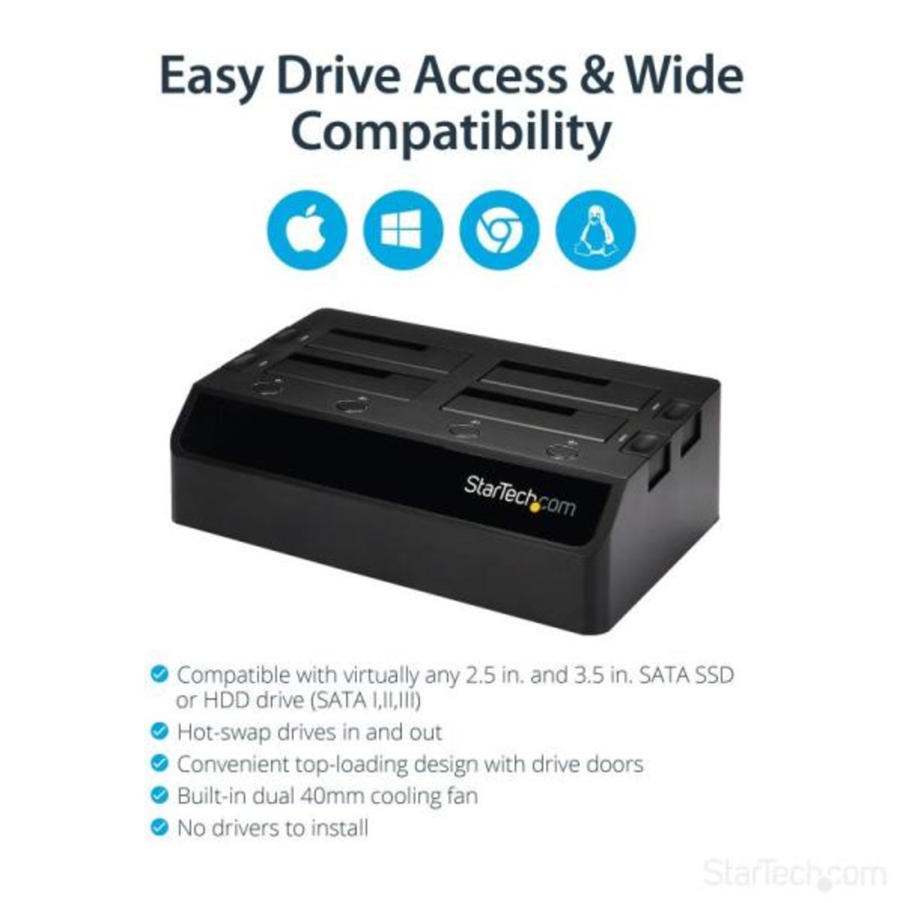 StarTech.com HDD/SSD スタンド/USB 3.0接続/4ベイ/2.5/3.5インチ SATA 1.0/2.0/3.0/ホットスワップ & トップローディング/USB-Aケーブル & ACアダプター付属/ハードドライブドッキングステーシ