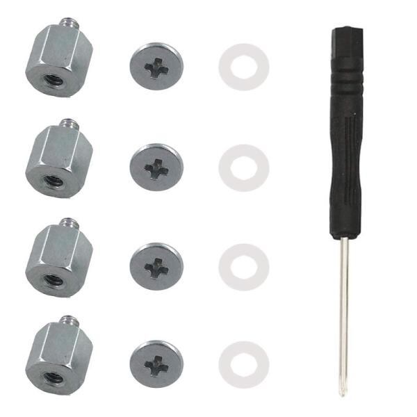 パッケージ内容:六角ヘッドジャックスクリュー×4、フラットヘッドネジ×4、透明ネジワッシャー×4、スクリュードライバー×1
