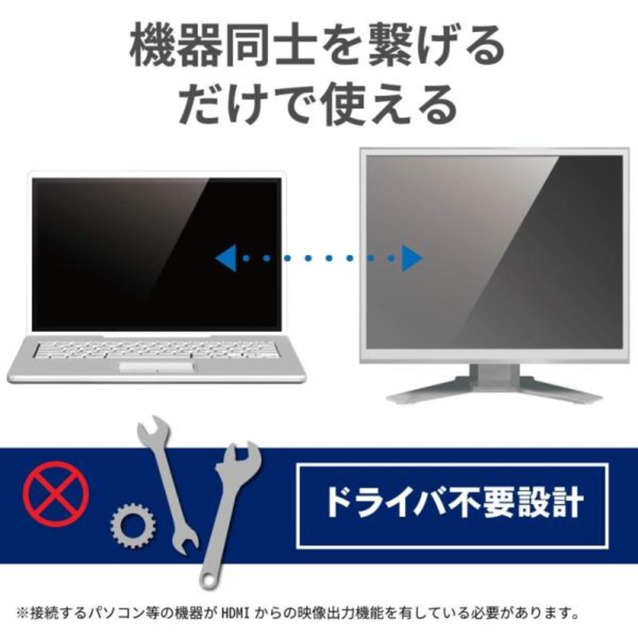 ドライバ不要で、機器同士を接続するだけで使用可能です。