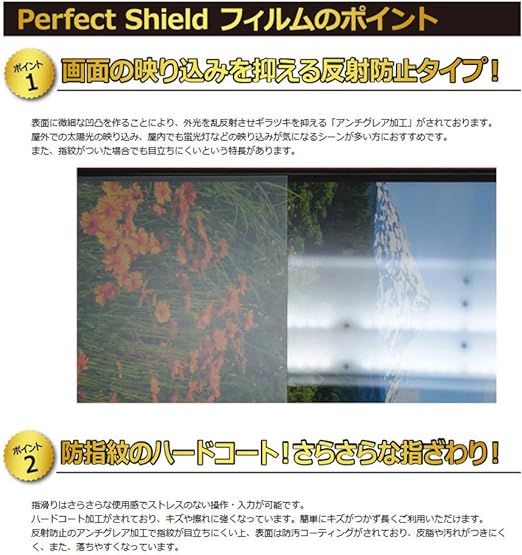 「Perfect Shield」は画面の反射を抑え、指のすべりもなめらかな指紋や皮脂汚れがつきにくい『アンチグレアタイプ(非光沢)の保護フィルム』