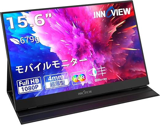 モバイルモニター 15.6インチ InnoView モバイルディスプレイ 1920*1080 FHD ゲーミングモニター ポータブルモニター IPS液晶パネル 薄型 軽量 持ち運び 保護カバー VESA対応 Switch/PS3/PS4/PS5/Xbox One/PC/スマホ/USBType-C/miniHDMI対応 サブモニター2 | PCBASE