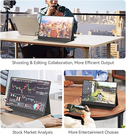 【ユニバーサル互換性】フル機能のType-CポートとHDMIポートを備えたノートパソコン用のポータブルモニターは、ほとんどのコンピューター、ノートパソコン、タブレットで動作します。 スマートフォン、Switch、PS3、PS4、Xboxに簡単に接続できます。これらのフレンドリーなポータブルディスプレイは、いつでもどこでも電子機器を拡張、拡張、拡張、二次画面化できます。
