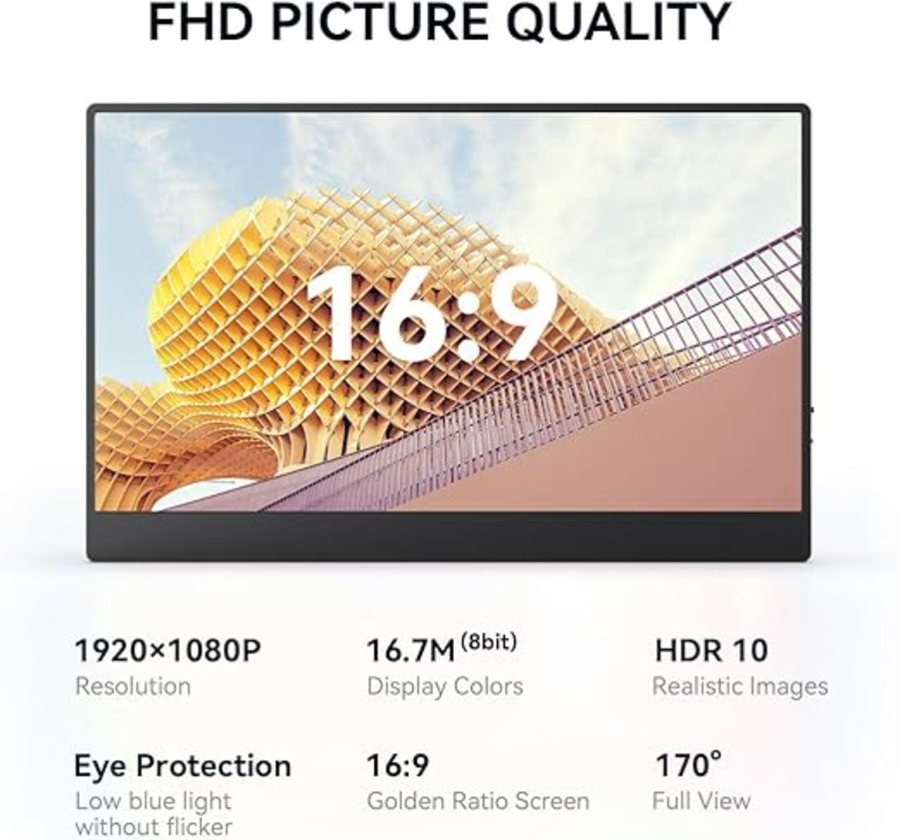【FHD 1080P HDR IPSスクリーン】このAYYノートパソコン用ポータブルモニターは、解像度1920×1080の15インチの高度なIPSスクリーンで作られており、178°の視野角、1000:1のコントラスト比、16:9のアスペクト比で、鮮やかな画像と真に没入感のある視聴体験を提供します。効果的に削減することもできます。 ブルーライト 放射 ダム 経年変化、ちらつきなし、アイケア、長時間視聴しやすくなります。